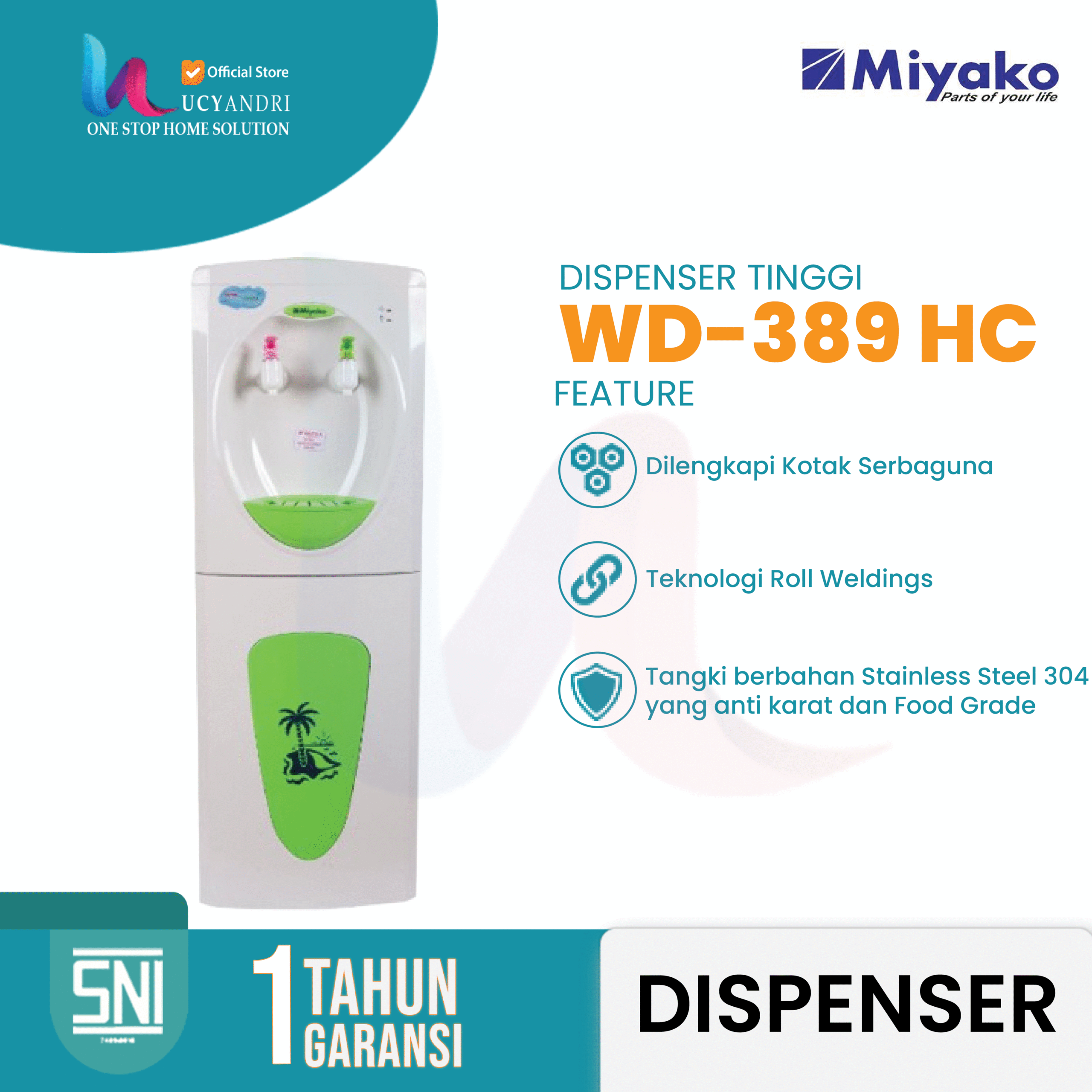 Dispenser Tinggi Miyako WD-389 HC – Galon Atas – Air Panas – 100% Original