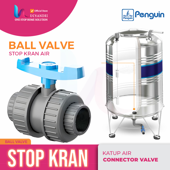 Double Union Ball Valve Penguin ukuran 1/2 Inch adalah Stop kran berkualitas dari merek Penguin, dirancang khusus untuk memudahkan instalasi dan perawatan sistem perpipaan air bersih. Dengan desain double union, valve ini memungkinkan pembongkaran tanpa melepas seluruh pipa. Cocok untuk rumah tangga, filter air, dan sistem hidroponik.