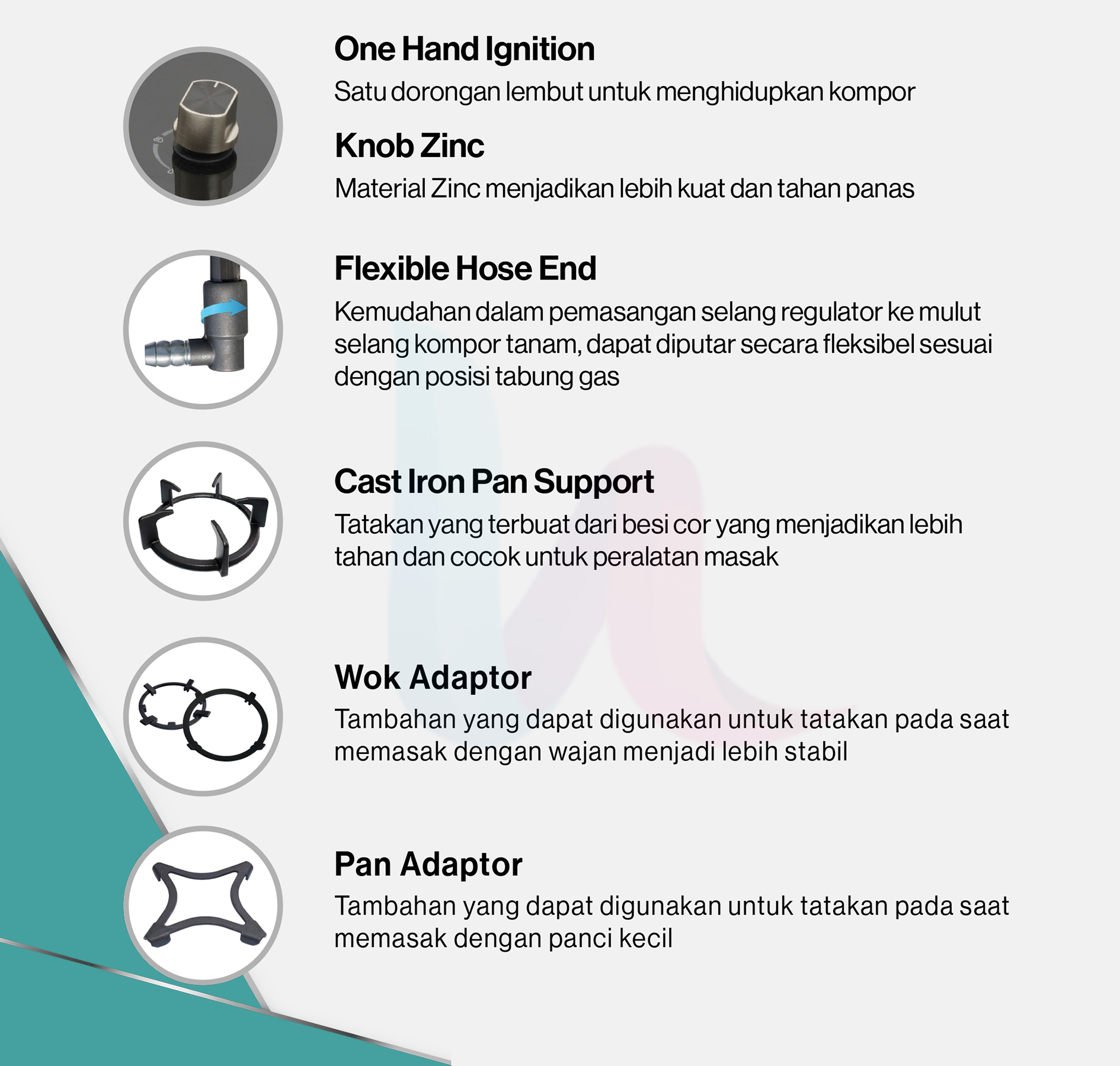 ✔ Dudukan Tungku Stabil & Aman – Dapat digunakan untuk berbagai ukuran panci & wajan.