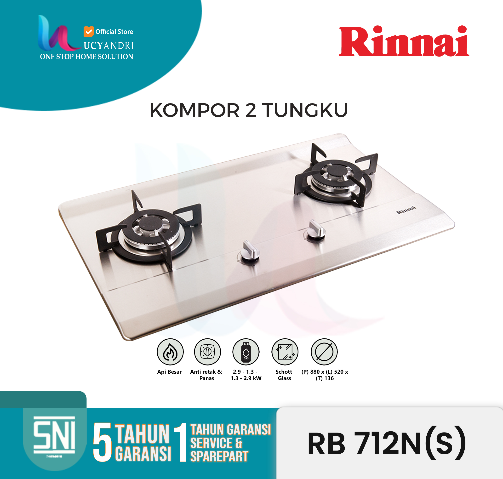 RINNAI RB-712NS adalah kompor tanam 2 tungku berbahan stainless steel berkualitas tinggi yang menawarkan daya tahan maksimal serta tampilan modern dan bersih di dapur Anda. Dengan sistem api ekonomis dan efisien, kompor ini sangat cocok untuk penggunaan rumah tangga maupun bisnis kecil. Didesain untuk penggunaan harian dengan fitur yang simpel namun fungsional, kompor ini tetap andal meski digunakan secara intensif. Kompor Tanam RINNAI RB-712NS adalah solusi ideal untuk dapur minimalis, hemat tempat, dan tetap stylish.