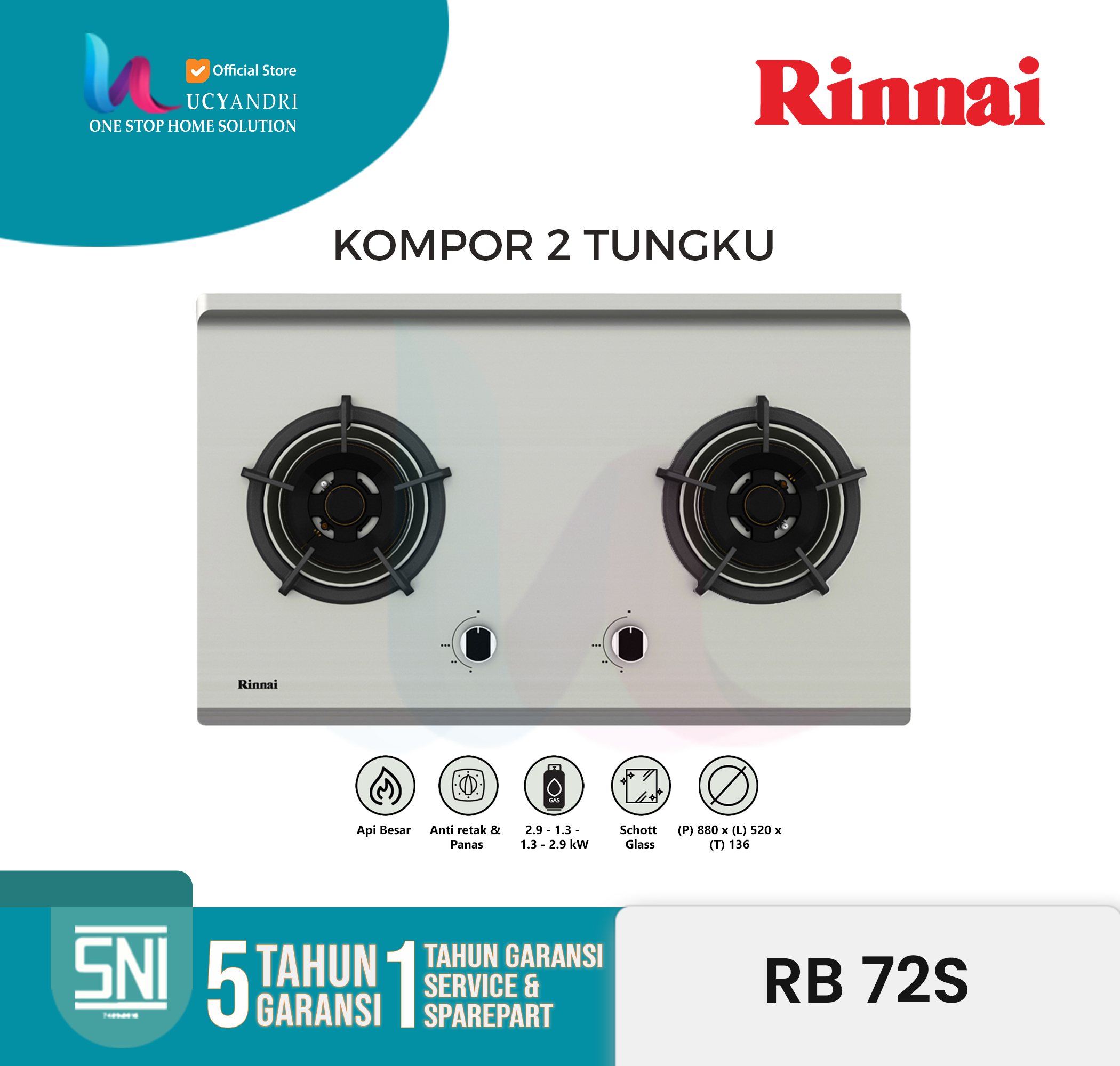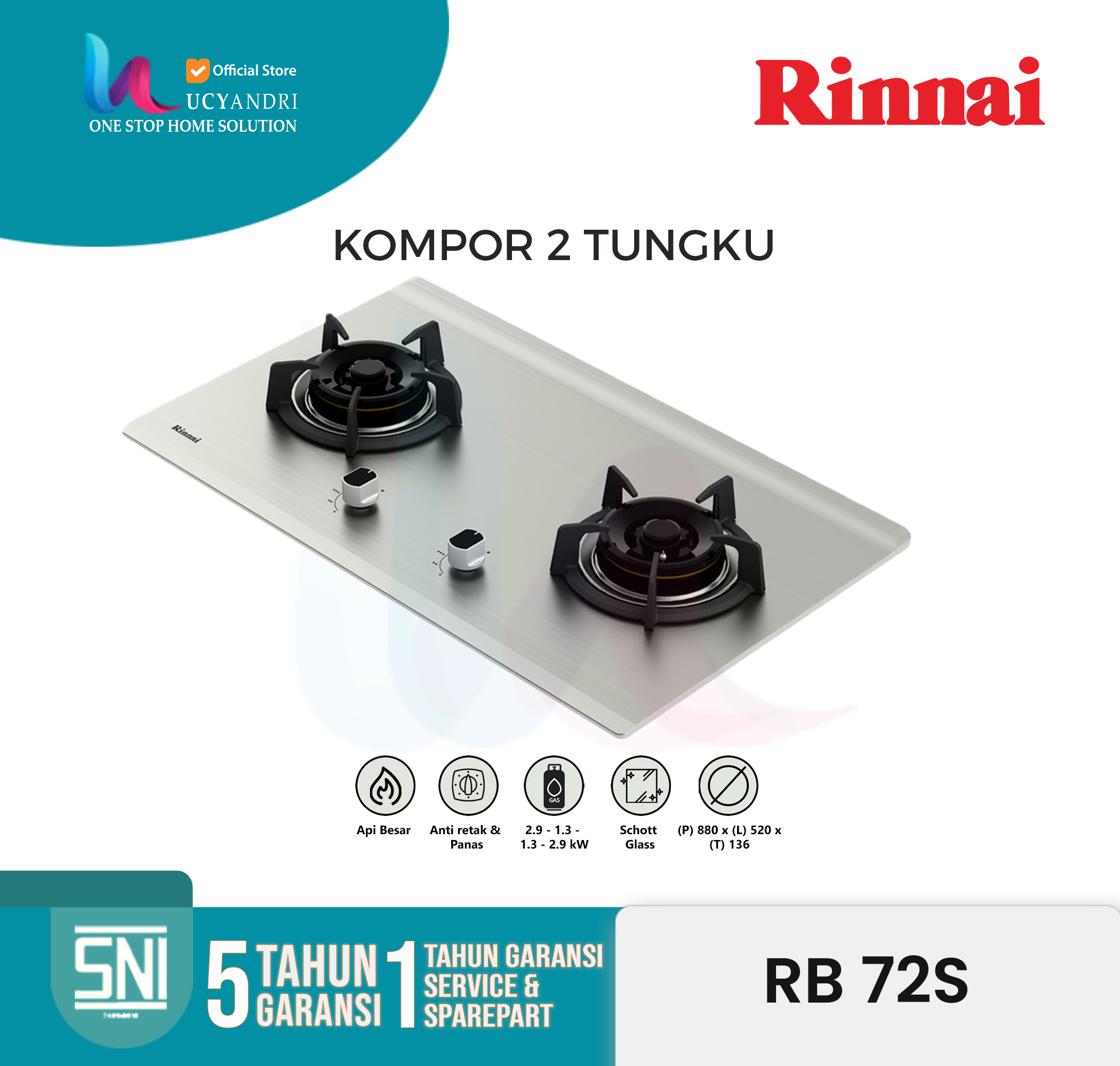 – Garansi: Garansi Resmi RINNAI Indonesia