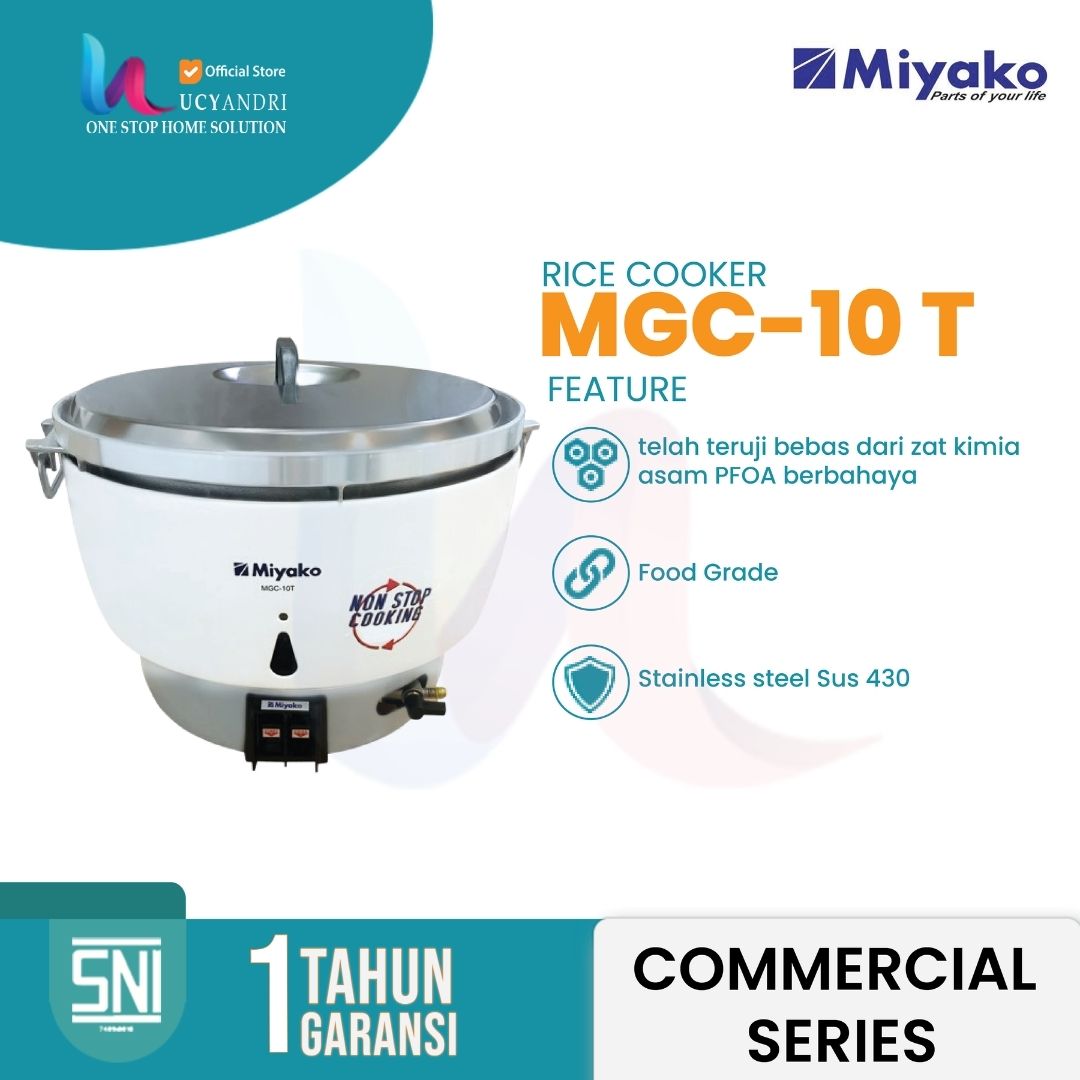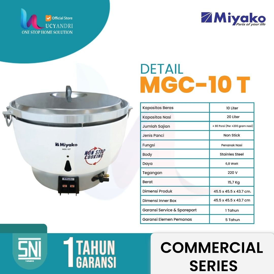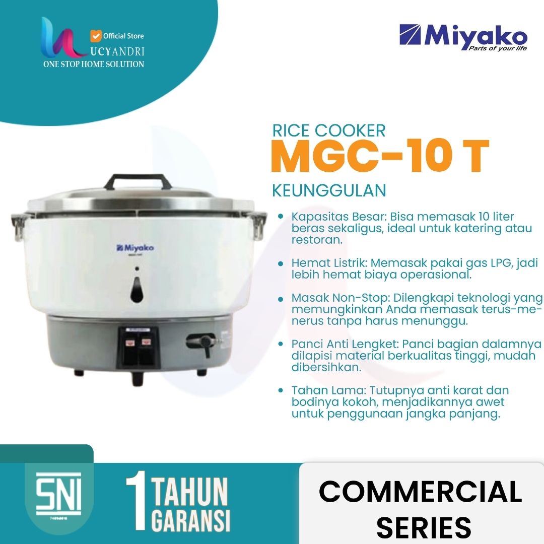 Miyako MGC-10 T adalah magic cooker mini berkapasitas 1 liter, dirancang khusus untuk kebutuhan rumah tangga kecil, kos-kosan, atau usaha skala kecil. Meskipun berukuran compact, produk ini termasuk dalam Commercial Series Miyako yang dikenal dengan kualitas tahan lama dan performa handal.