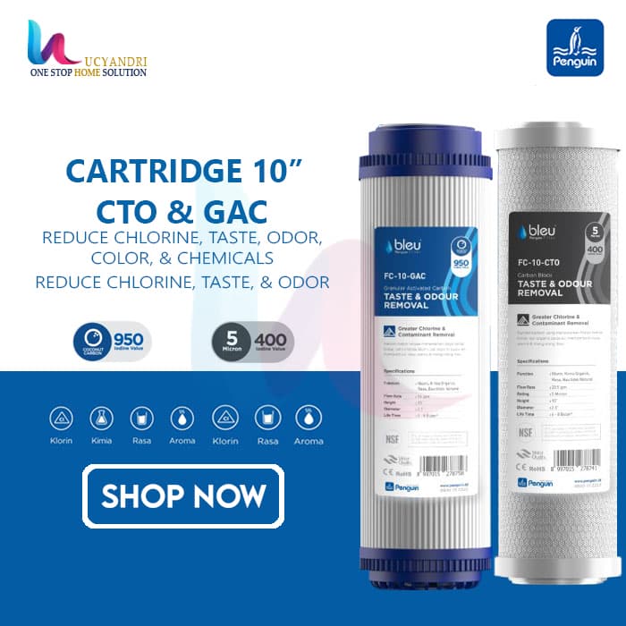 ** GAC + CTO Activated Carbon Catridge dapat bertahan 6-8 bulan tergantung dari kondisi air ditempat anda.