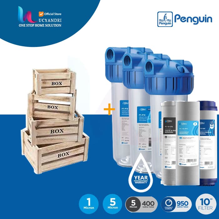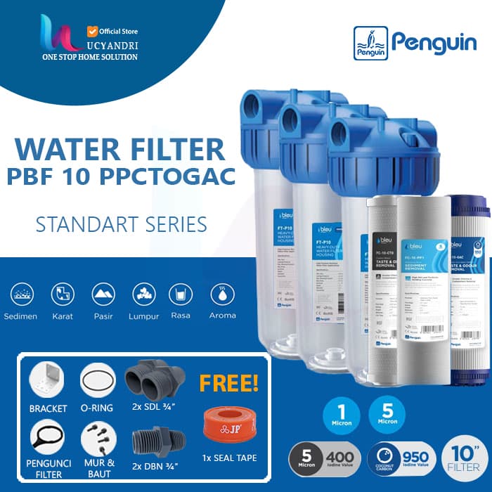 PAKET FILTER AIR Tanah/Sumur/PAM Kotor & Berbau PENGUIN PP CTO GAC lengkap
