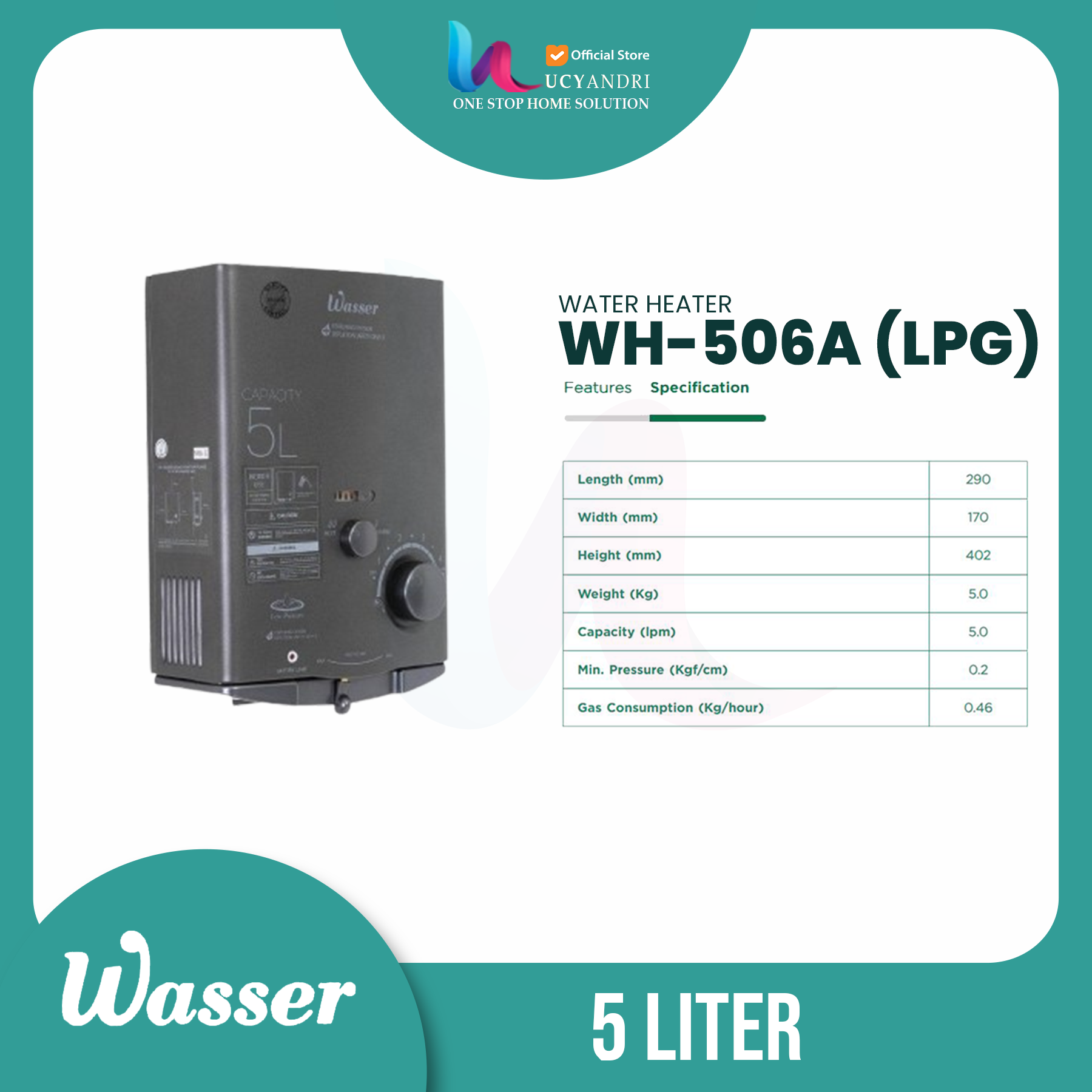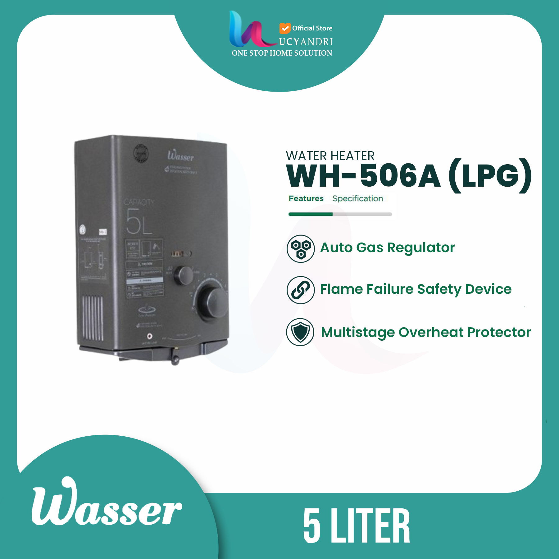 Pemanas Air Gas Wasser WH 506 A Original – Water Heater Gas Hemat & Cepat Panas Garansi Resmi