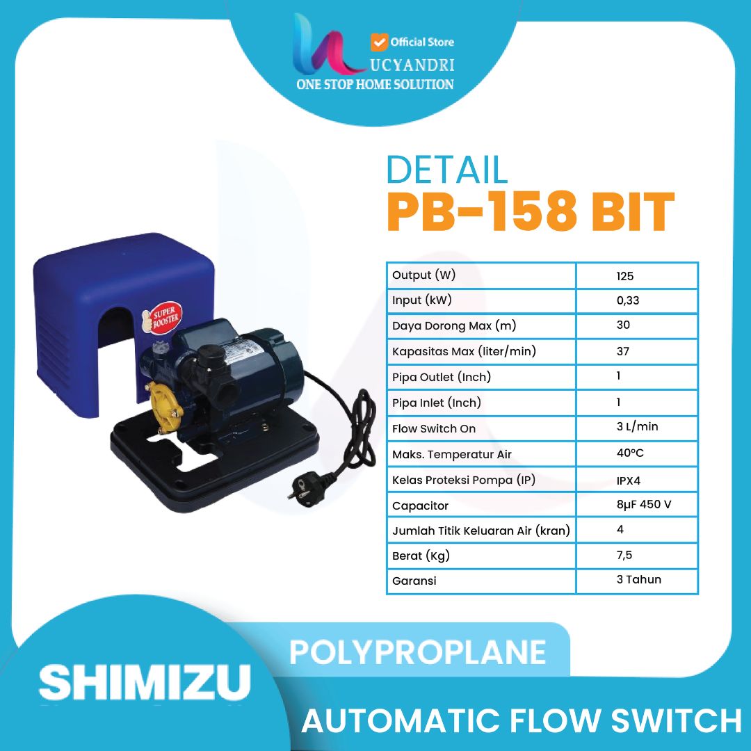 Pompa Air Shimizu PB-158 BIT K | Pompa Otomatis Sumur Dangkal | Hemat Listrik & Tahan Lama