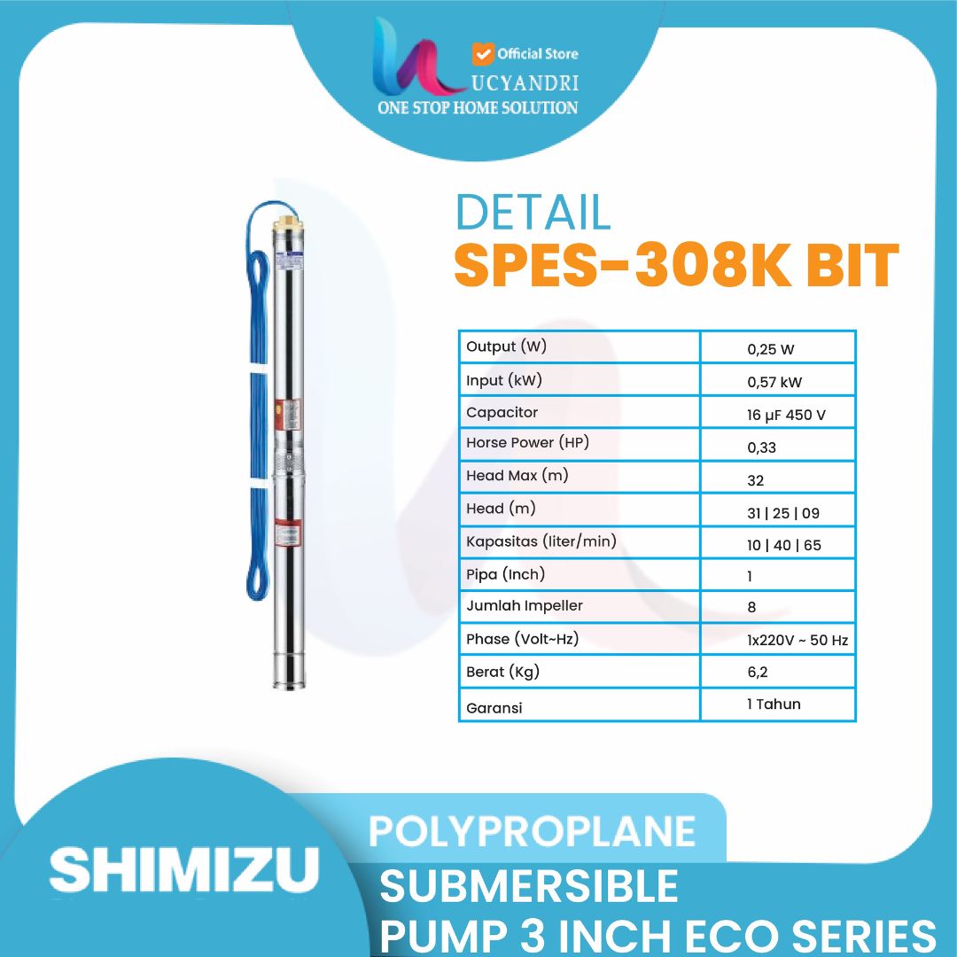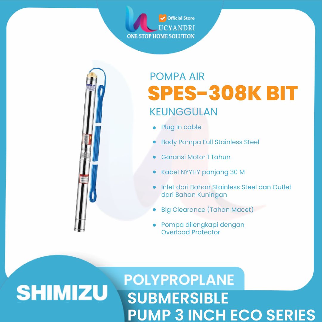 Pompa Air Shimizu SPES308K BIT – Pompa Air Shimizu SPES308K BIT 1/3 HP – Daya Dorong 30 Meter | Booster Air Mini Hemat Listrik