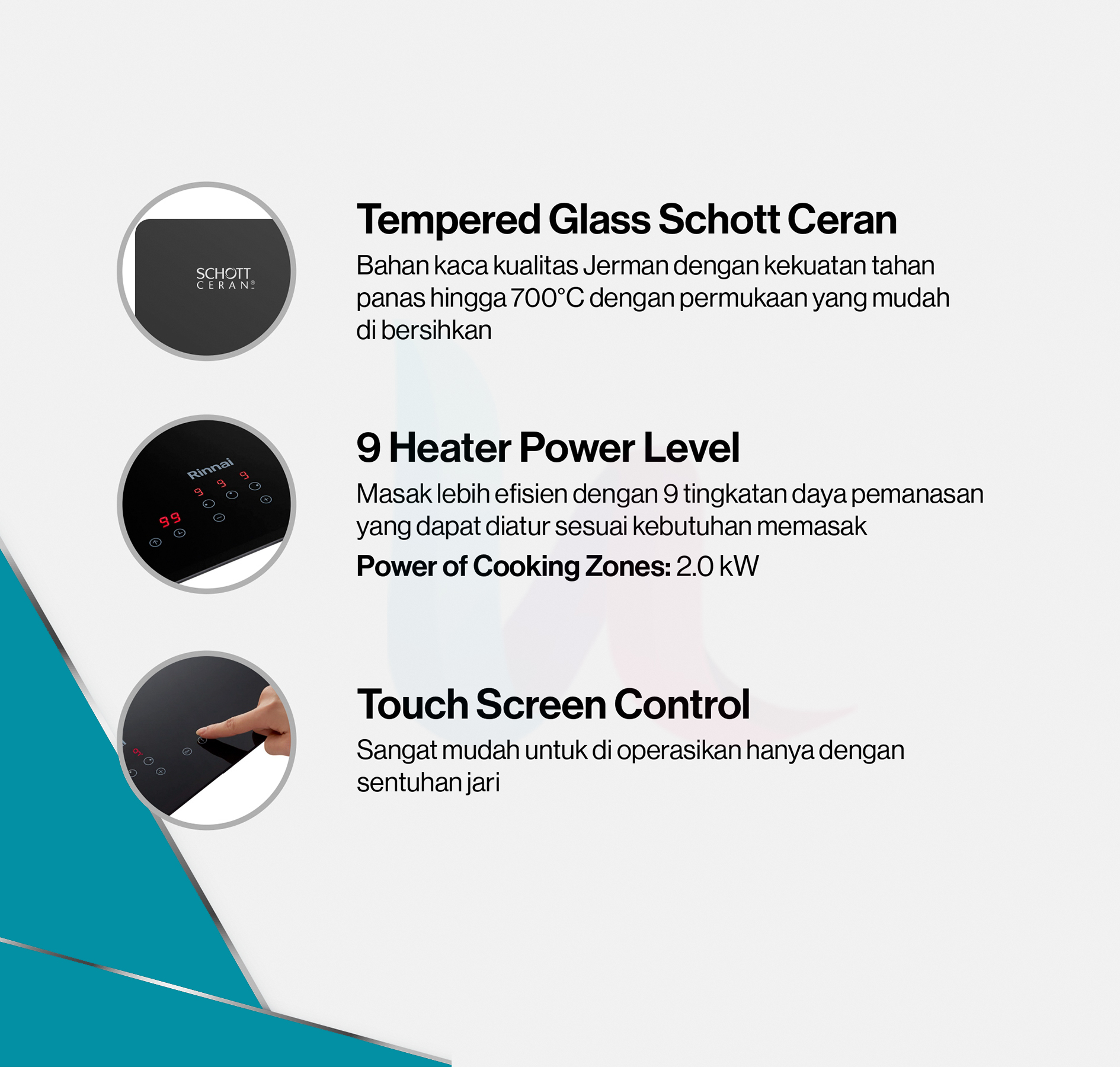 – Material Permukaan: Kaca Schott Ceran® (Jerman)