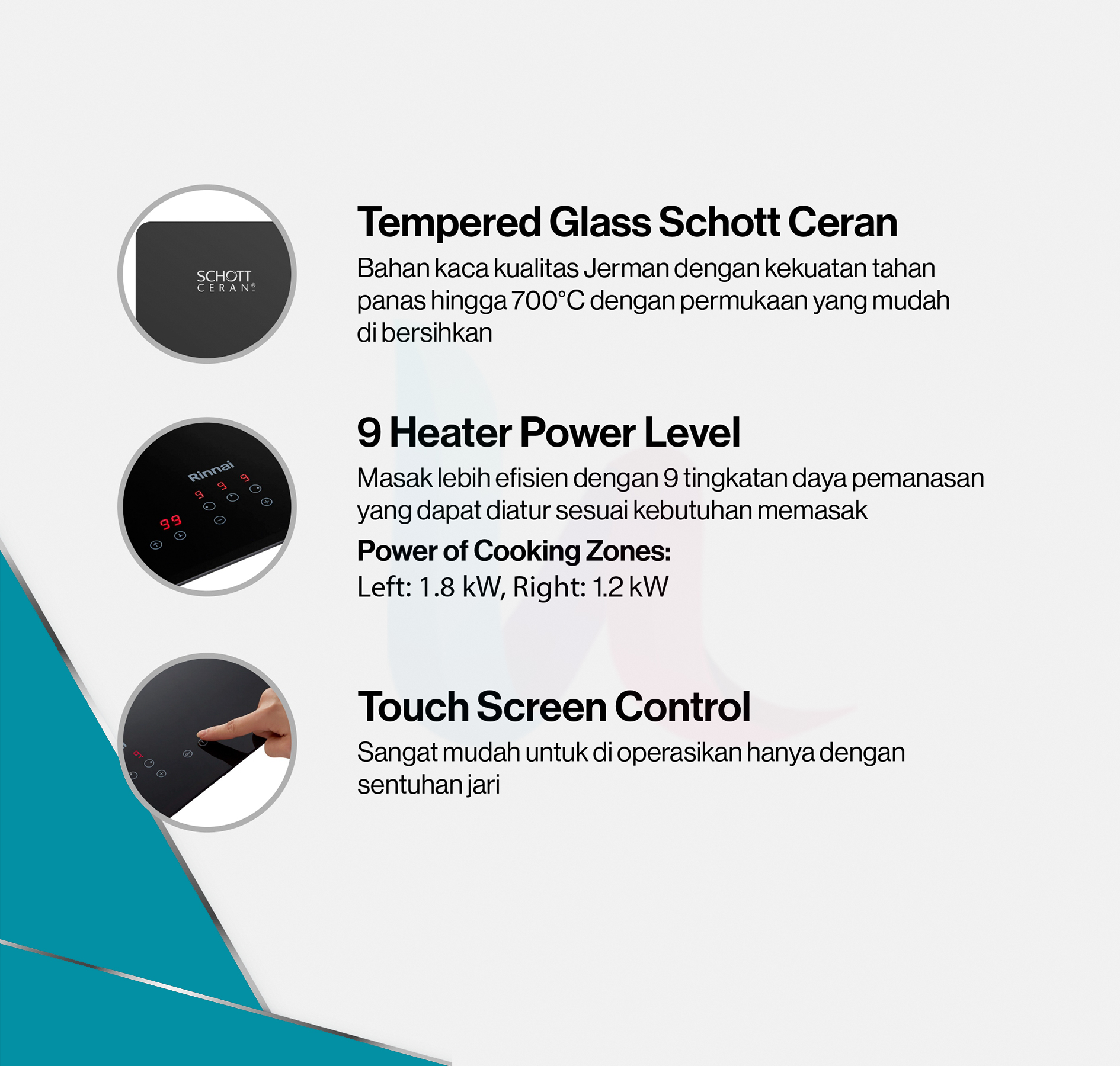 – Permukaan Kompor: Kaca Schott Ceran® Jerman