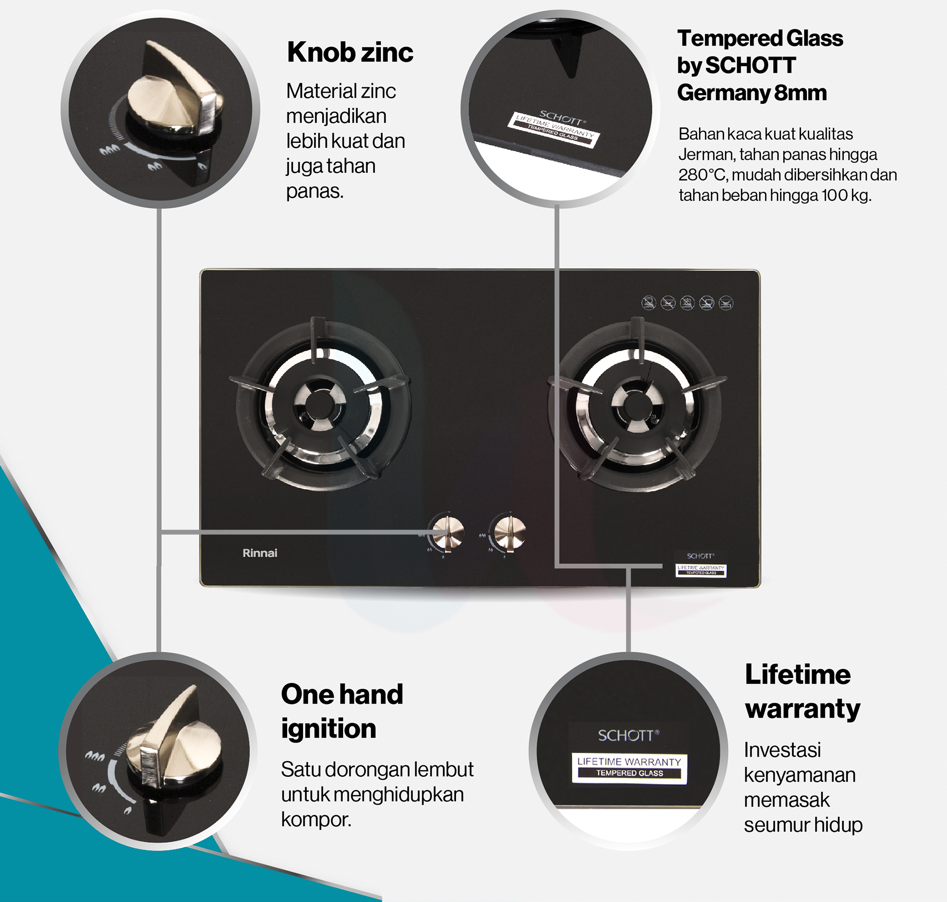 Kompor Gas Tanam Rinnai RB2GHCCF 2 Tungku ā Built In & Elegan