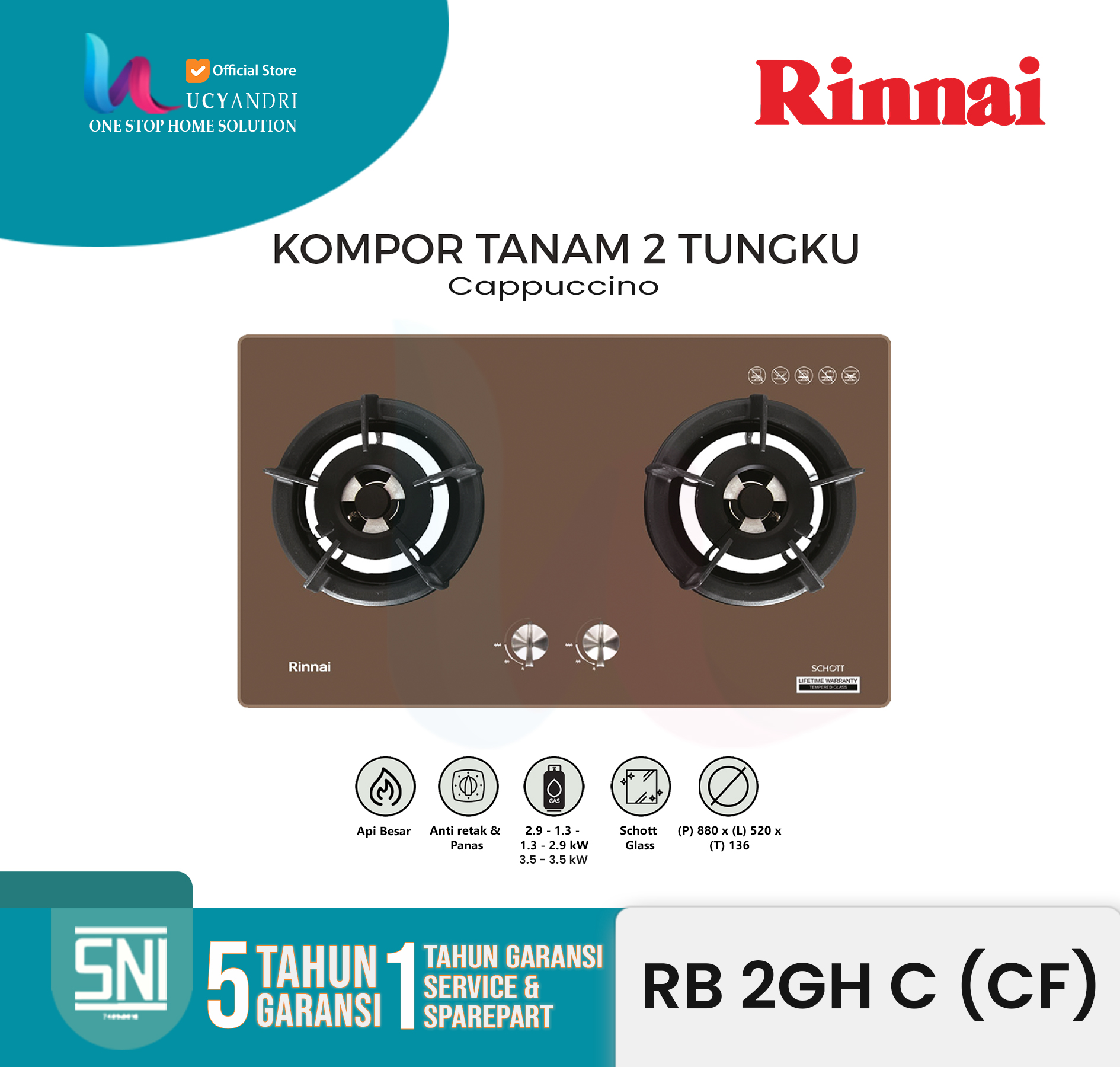 Rinnai RB2GHCCF Kompor Gas Tanam 2 Tungku | Original & Berkualitas