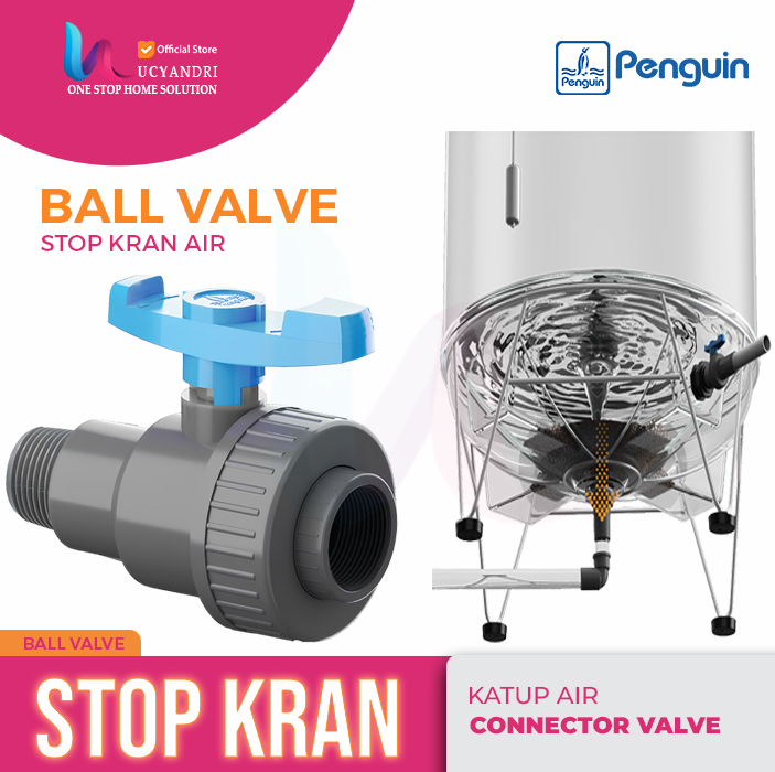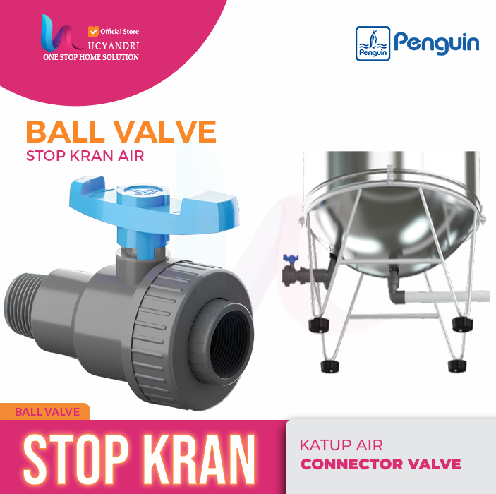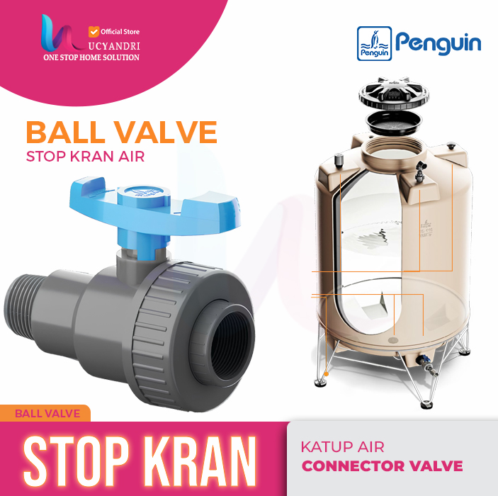 Single Union Ball Valve Penguin ukuran 1 Inch (FxM) adalah kran bola berkualitas tinggi yang dirancang untuk mengontrol aliran air pada instalasi pipa PVC. Dilengkapi dengan sambungan union yang memudahkan proses pelepasan dan perawatan tanpa perlu membongkar seluruh sistem.