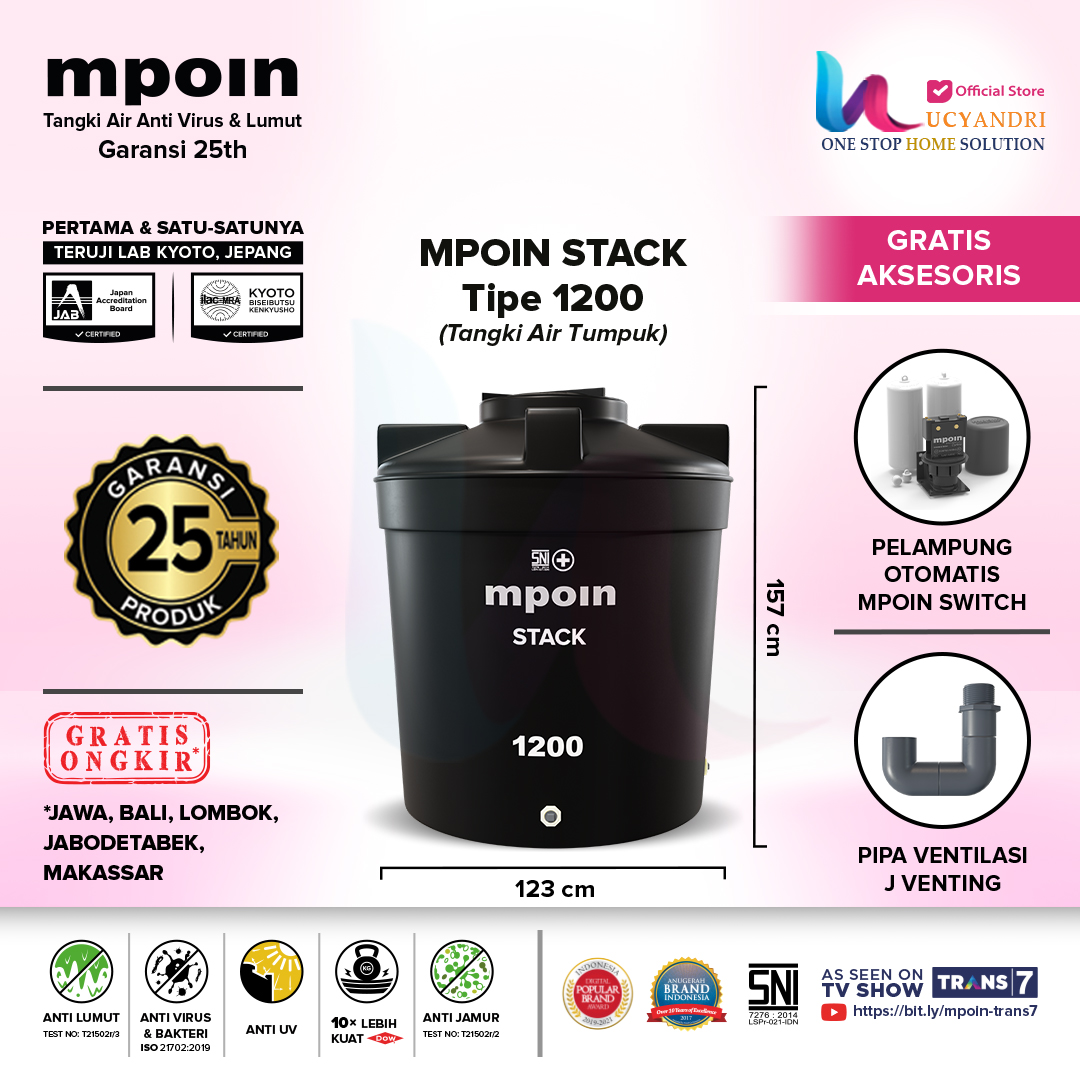 Tangki Air MPOIN PLUS 1200 Stack Toren Tandon 1100 Liter