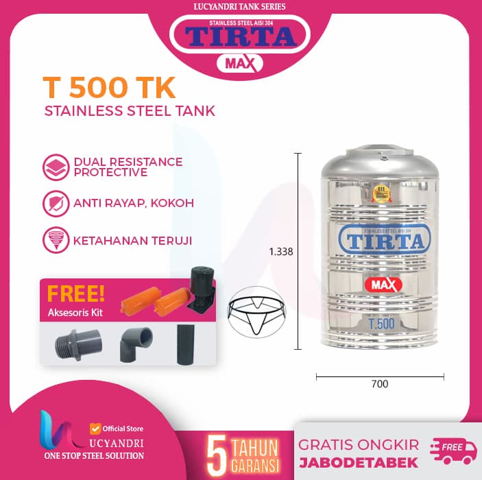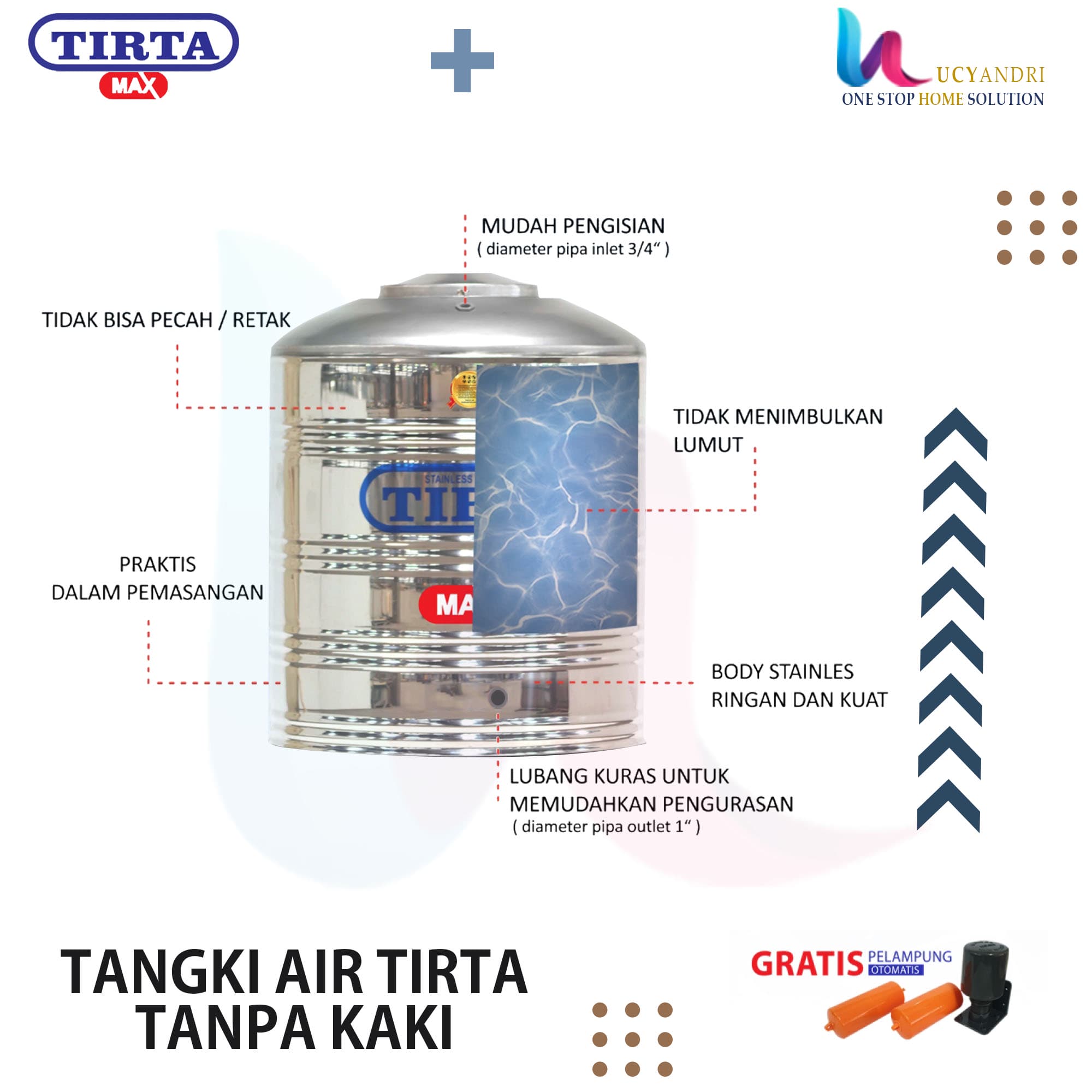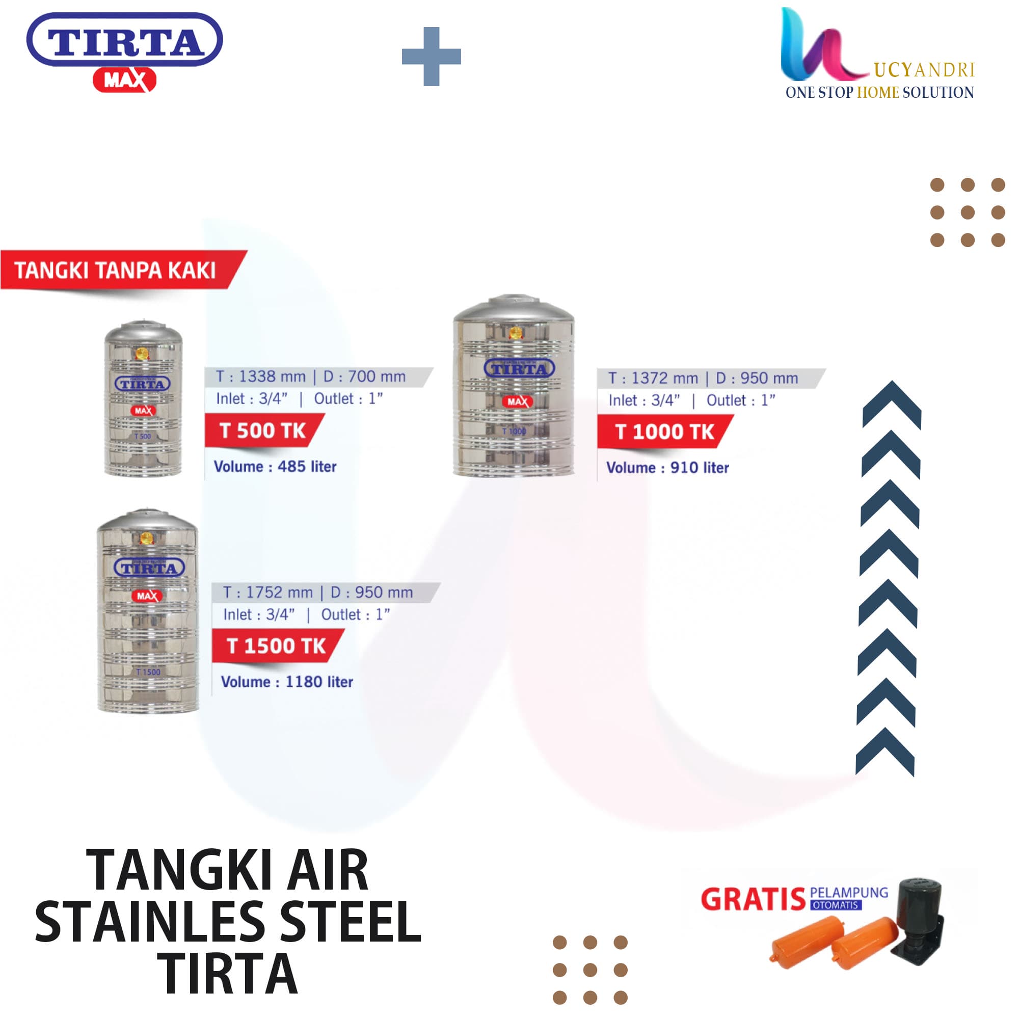 Tangki Air Tirta T 500 TK Datar Stainless Steel Tandon Toren