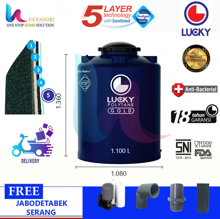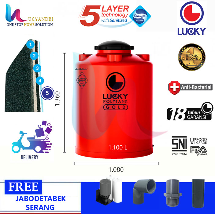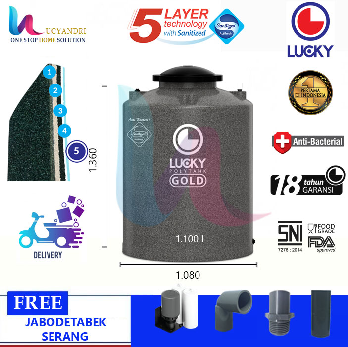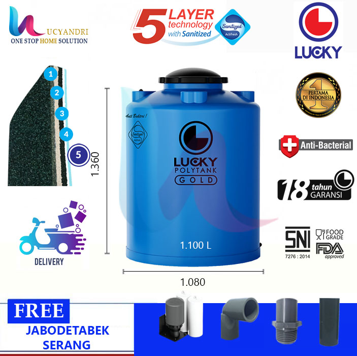 Lucky Polytank with sanitized adalah tangki air pertama di Indonesia dengan lapisan perlindungan terhadap bakteri.