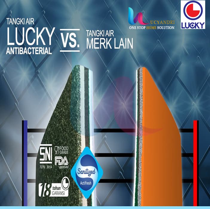 Tangki air Lucky Polytank Dibuat menggunakan polyethylene murni (bukan daur ulang) dan bahan – bahan bersertifikasi food grade dan ISO atau berstandar internasional.