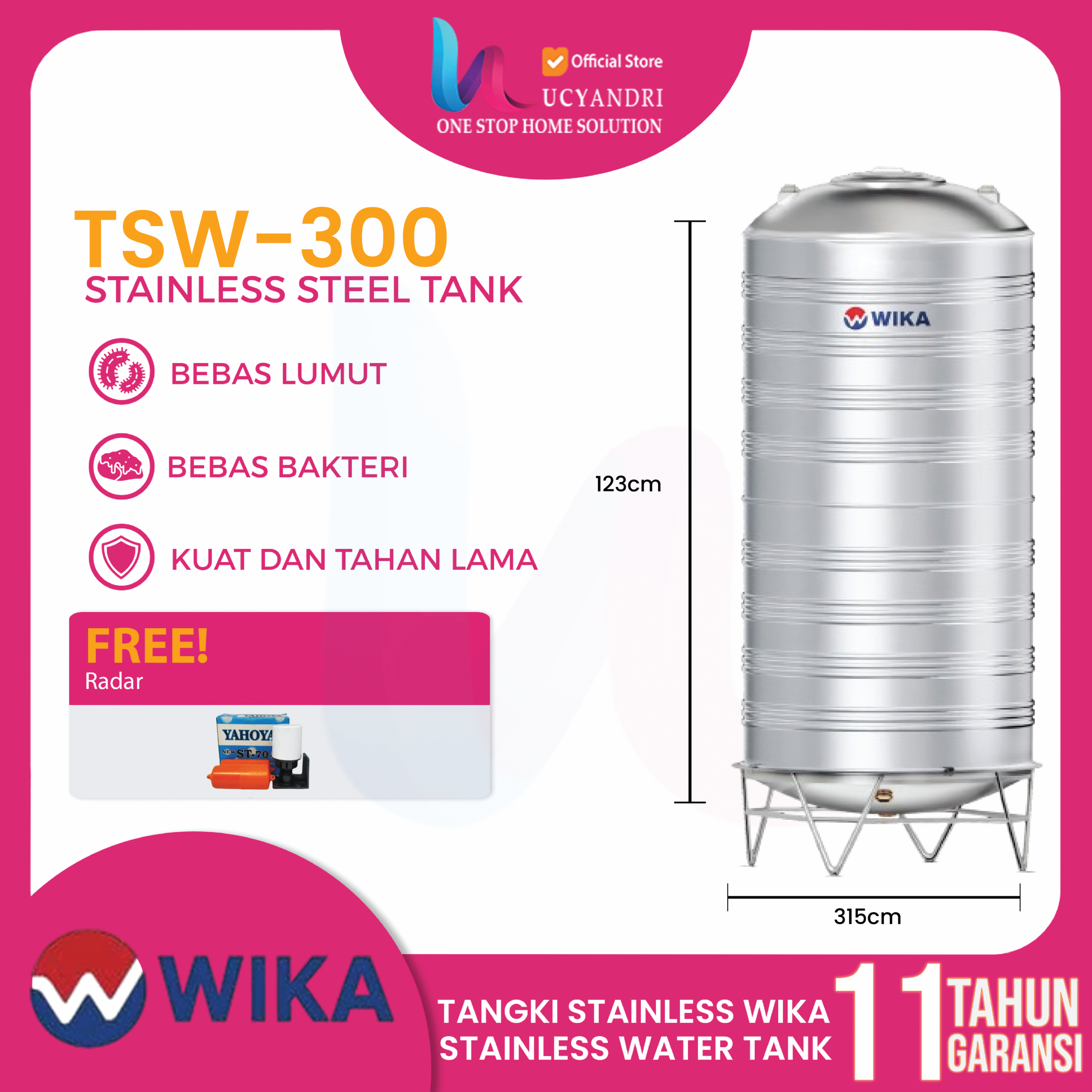 Tangki Air WIKA 3000 Liter Tipe TSW300 | Toren Air Wika 3000 Liter Stainless Steel – Kuat, Awet, Bergaransi Resmi