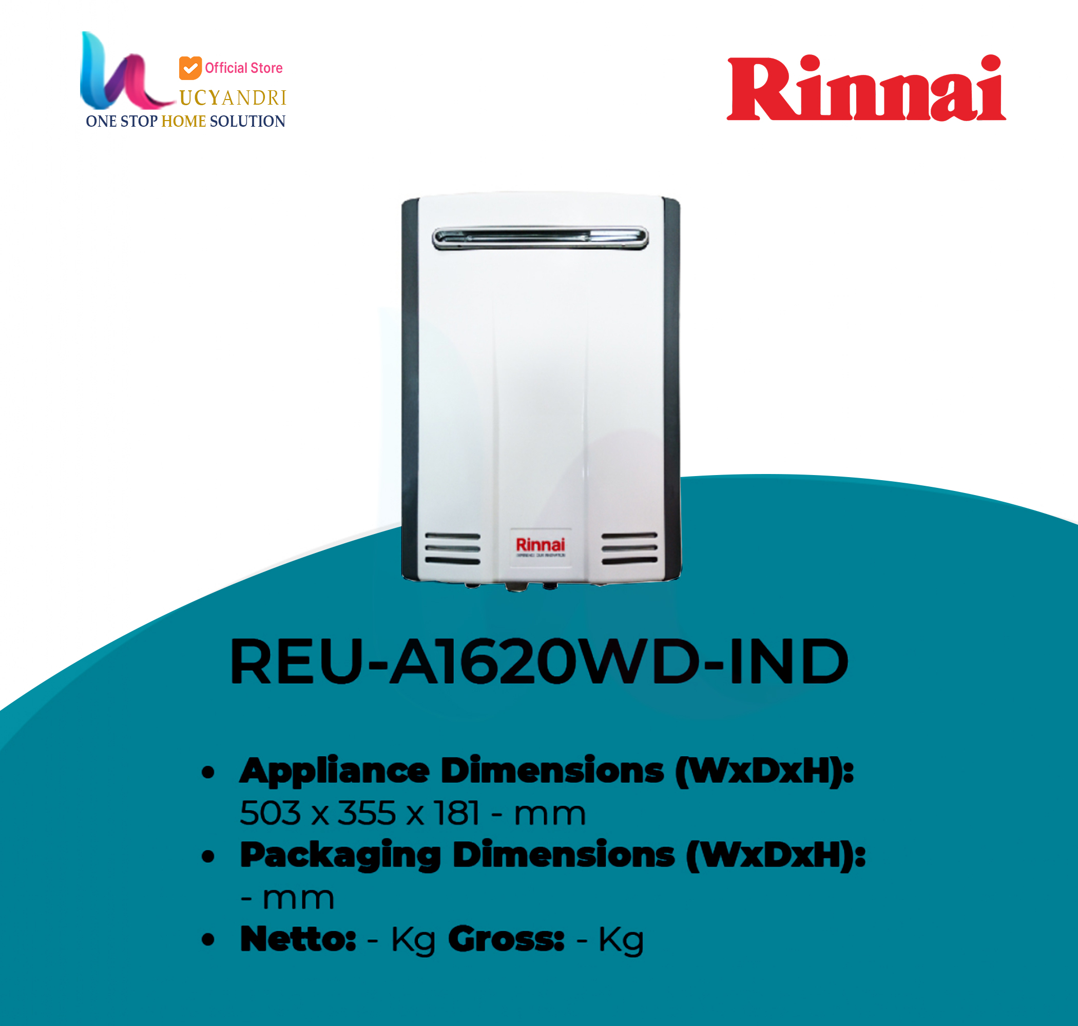 WATER HEATER RINNAI REU-A1620WD-IND / REU A1620WD IND 16 – 20L