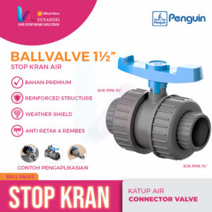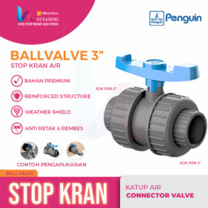 Spesifikasi Produk: ā Merek: Penguin ā Tipe: Double Union Ball Valve ā Fungsi: Stop kran / katup pengontrol aliran air…